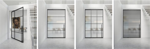Pivotové uložení se vždy přizpůsobuje dané výšce a šířce dveří, čímž je zajištěna stabilita a funkčnost i u velkoformátového provedení.