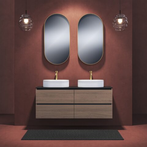 Zajímavým doplňkem je možnost integrovat LED osvětlení 6000 K pod desku nebo umyvadlo, světlo, které nejen podtrhne linie nábytku, ale i dodá prostoru jemnou atmosféru.