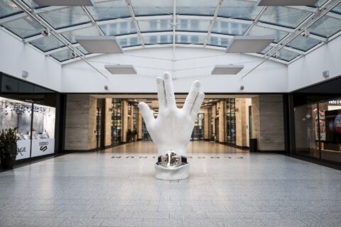 V prostředí, kde se běžně spěchá a čas je měřen na sekundy, vzniká místo, které vybízí ke zpomalení. Skulptura ruky tu funguje jako tichý protiváha městského shonu – připomínka individuality, lidského doteku a vnitřní rovnováhy. Právě v tom spočívá její síla: nenápadně, ale neodbytně proměňuje prostor v zážitek.