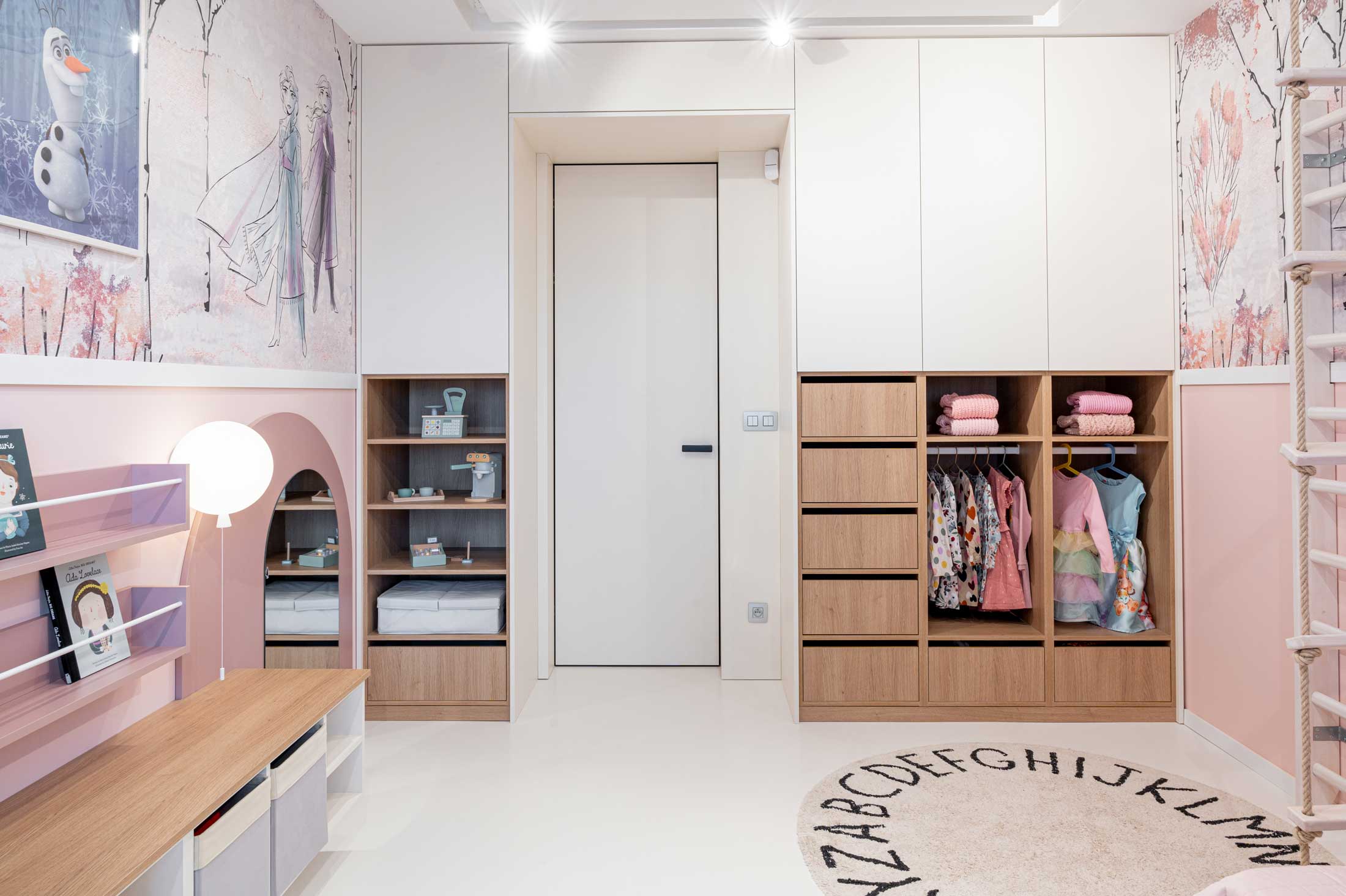 Vzdušný dětský pokoj s intuitivními úložnými prostory, do kterého barevně ladí otočné dveře MASTER