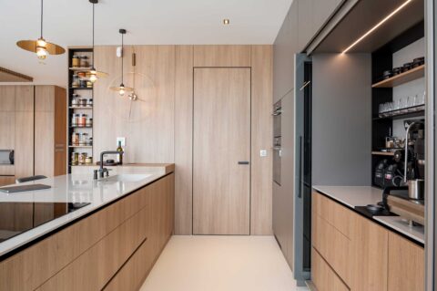 Dveře ve skryté zárubni podtrhují čistý design v duchu minimalismu