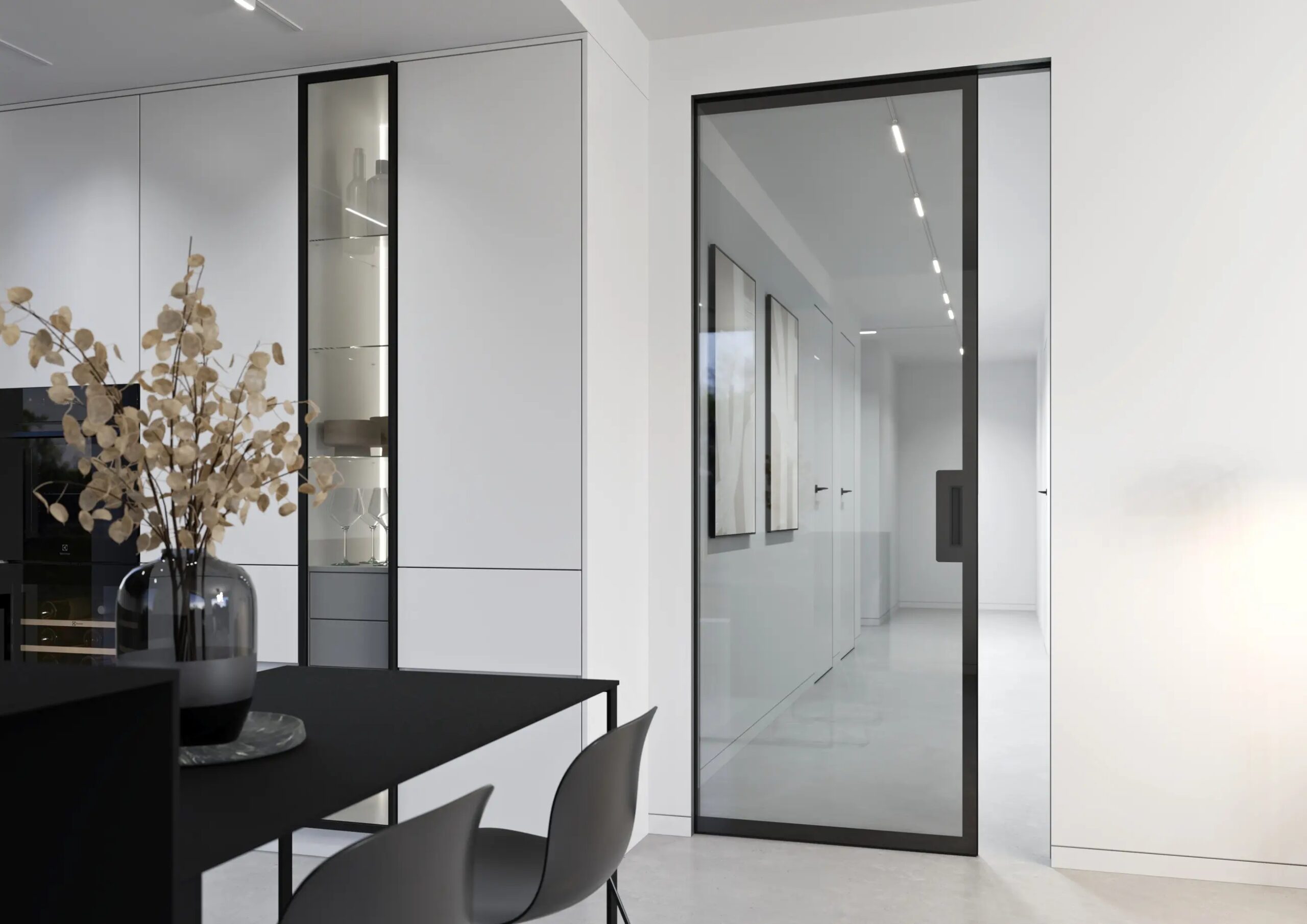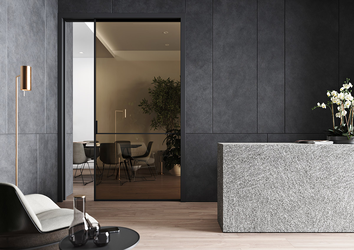 Zvláště bezobložková stavební pouzdra dokonale zapadají do minimalistických a moderních prostor – bez viditelných rámů nebo obložek, takže vzniká dokonale čistá linie mezi dveřmi a stěnou.