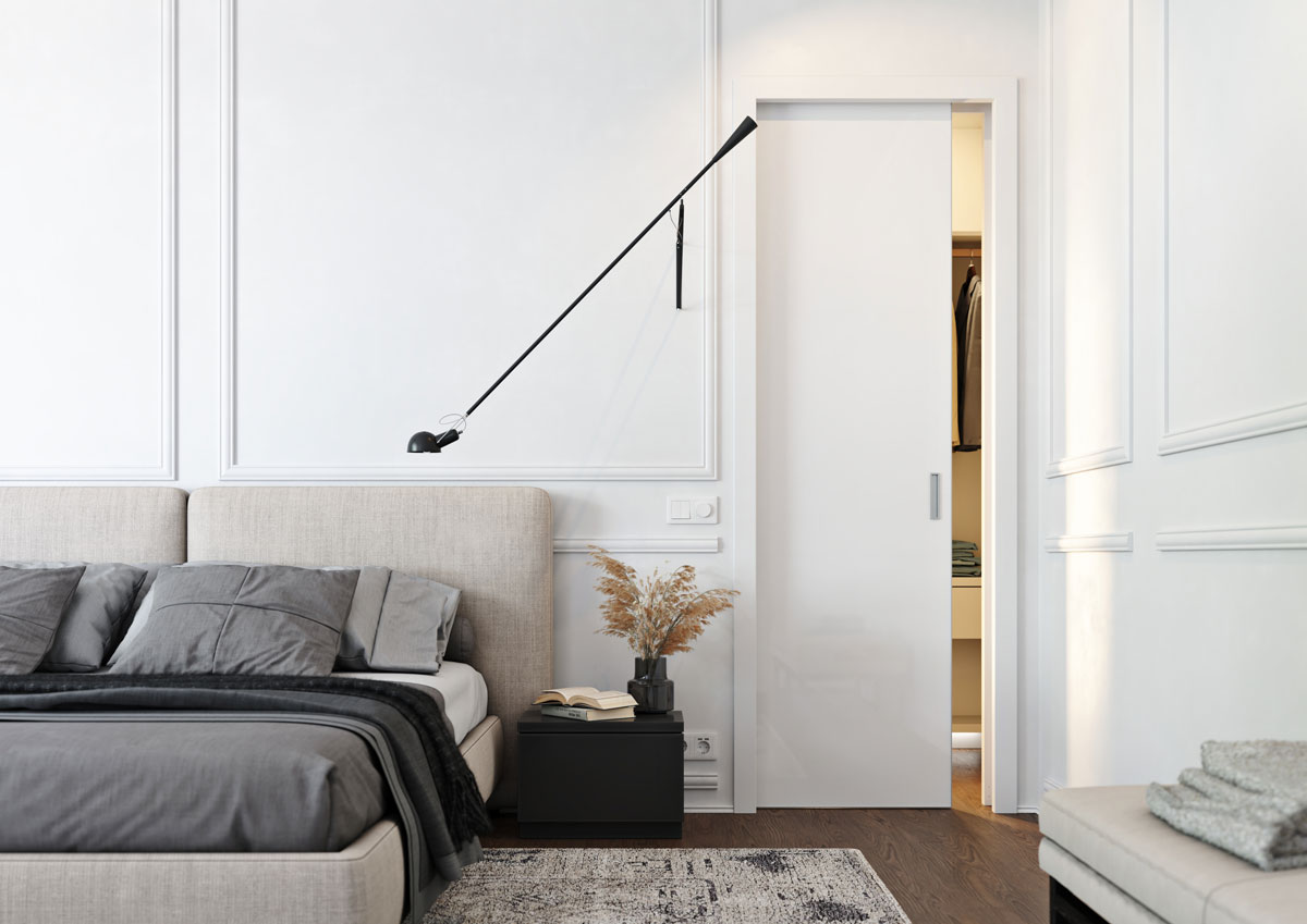 A právě v tom spočívá jeho kouzlo. Místo klasických otočných dveří, které zabírají cenný prostor, stavební pouzdro umožní dveře zcela schovat a vytvořit tak otevřený, vzdušný a elegantní interiér.