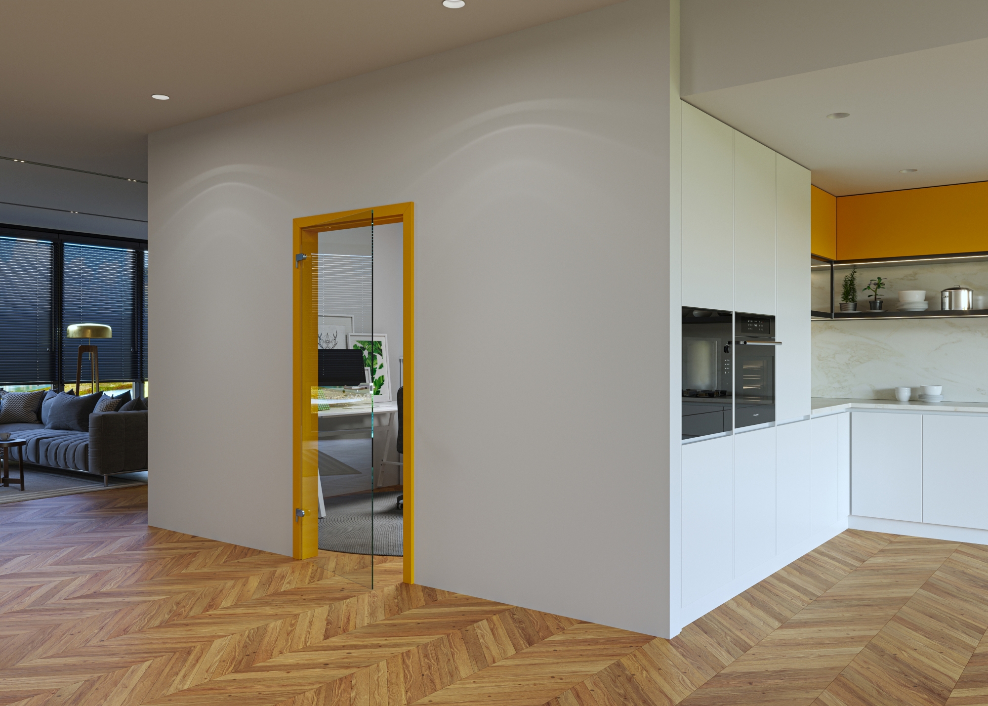 „U celoskleněných dveří nabízíme jak průhlednou, tak průsvitnou variantu, která zamezuje přímému průhledu do místnosti, ale zároveň zachovává prosvětlení prostoru.
