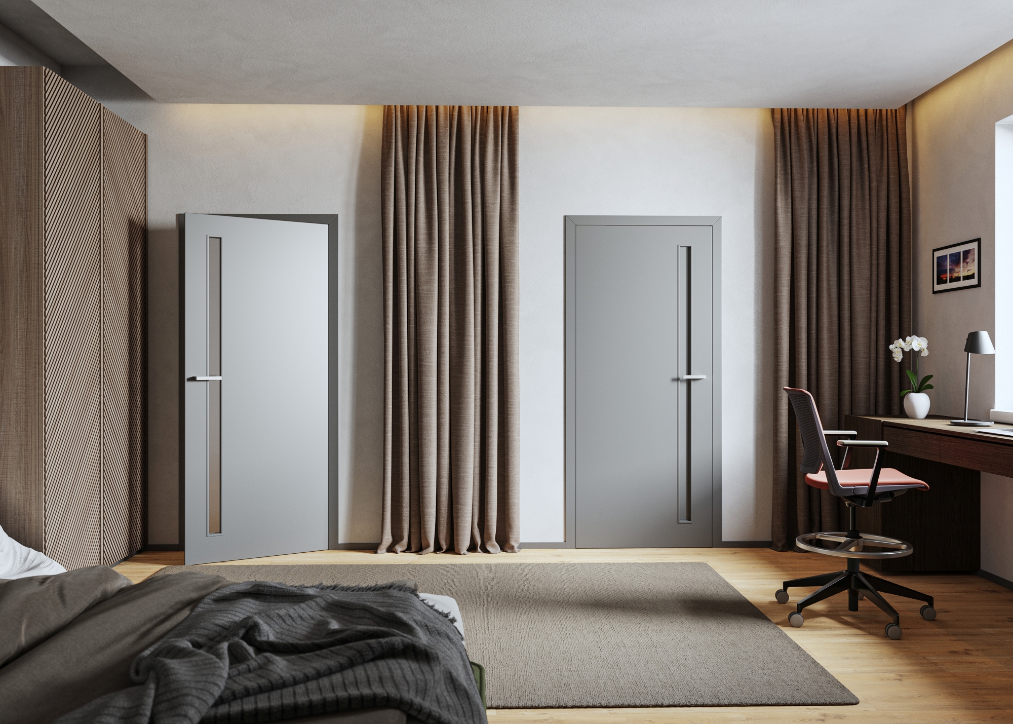 Mezi milovníky moderních interiérů a minimalismu jsou populární bezfalcové dveře a reverzní dveře (dveře se skrytým falcem), které přináší perfektně splývající rovinu dveří a zárubní.
