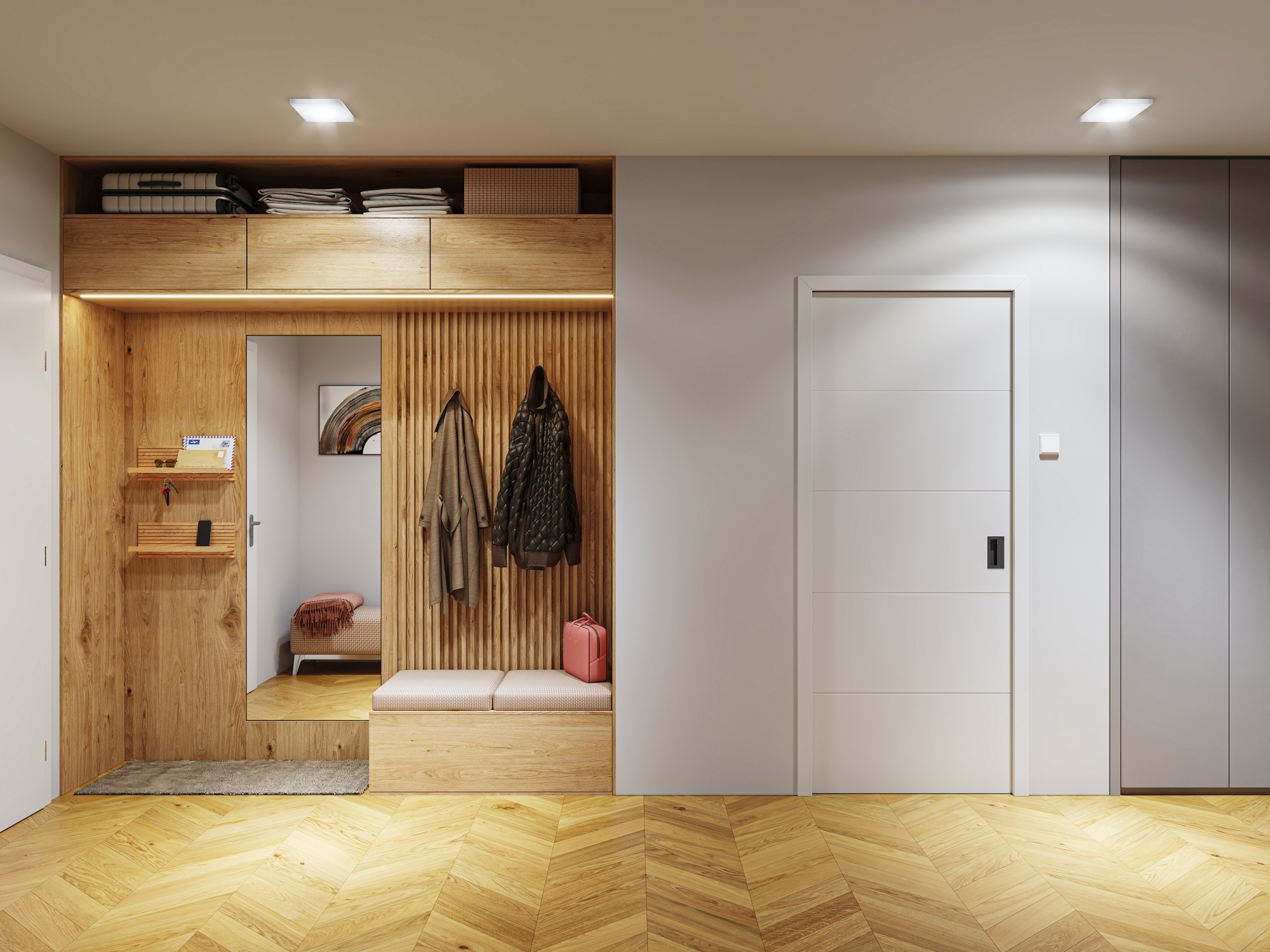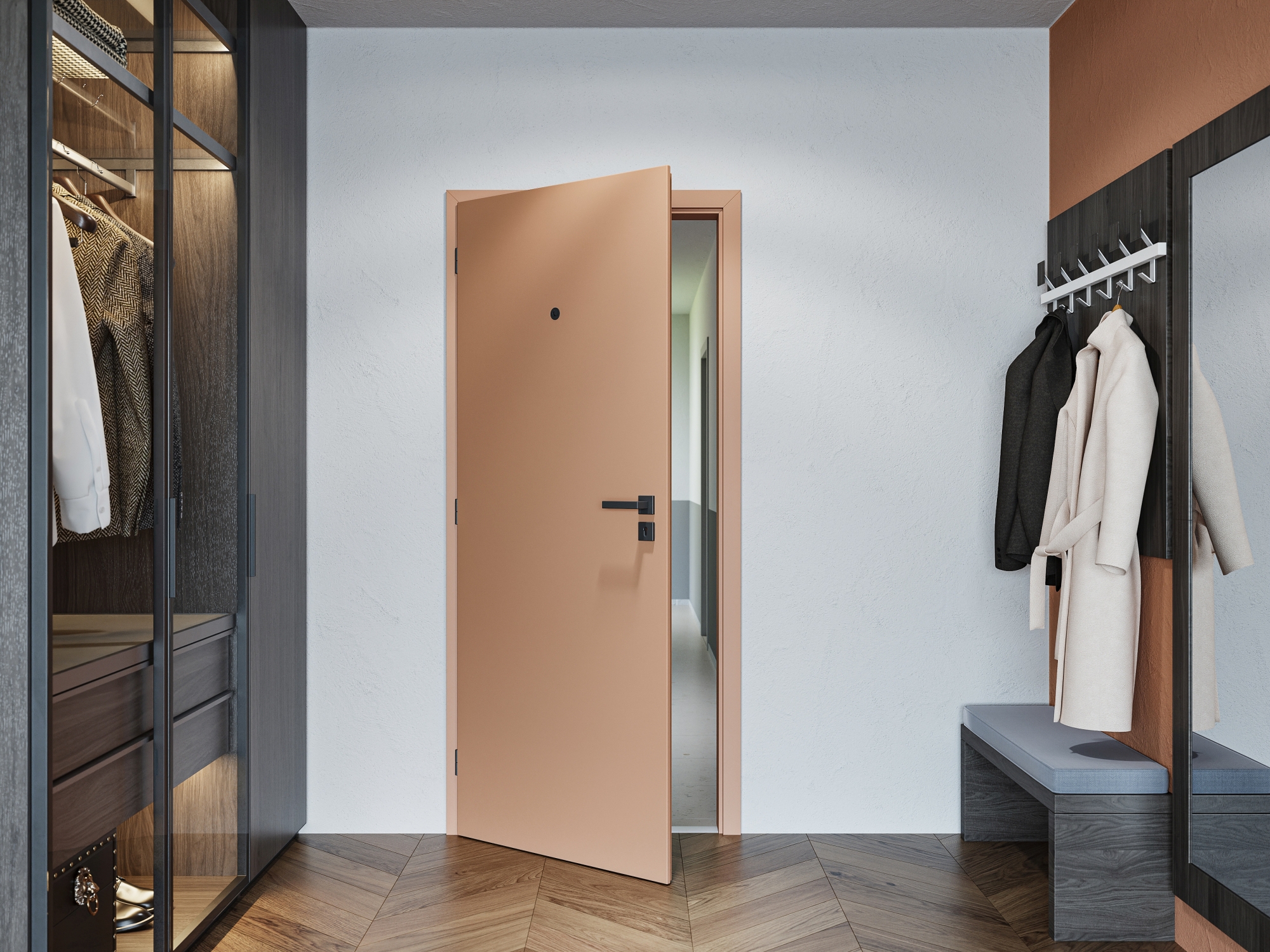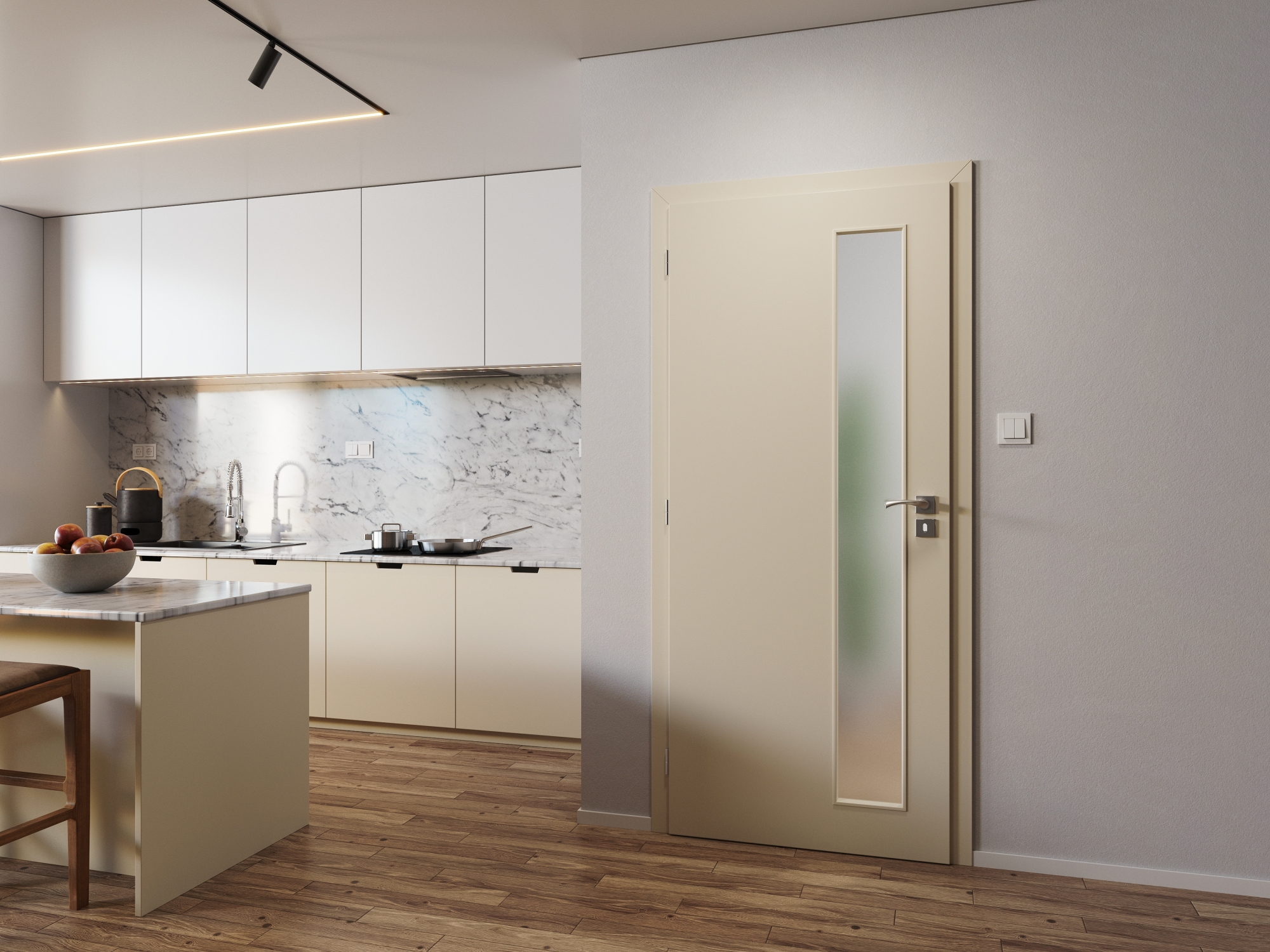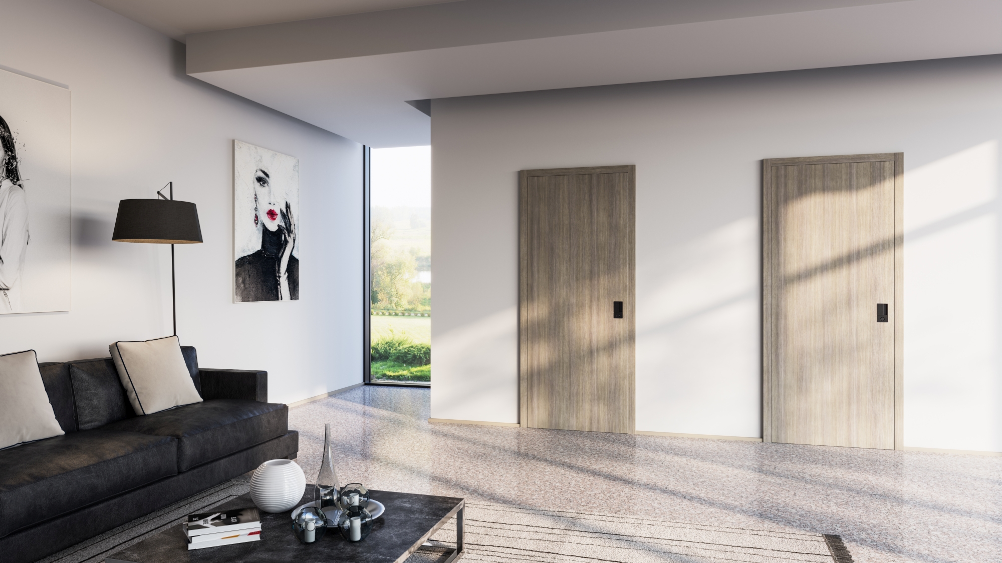 „V obou případech dveřní křídlo zcela zapadá do zárubně a společně tak vytváří jeden elegantní celek, který splývá se stěnou.